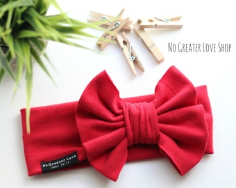 Solid Red Turban Headband - Head Wrap - Top Knot - Petite Bow - Big Bow - Baby Child Adult - Buy One Give One