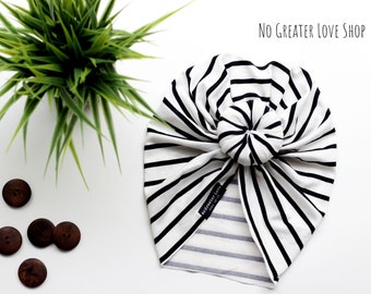 Stunning Black and White Wide Stripe Knotted Beanie - Turban Beanie - Top Knot Beanie - Newborn through Adult - All Profits to Missions