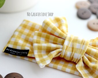 Sunshine Yellow Gingham Headband - Bow Headband - Turban Headband - Top Knot Headband - Baby Child Adult Sizes - Buy One Give One