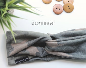 Faded Camo Headband - Turban Headband - Bow Headband - Big Bow - Top Knot - Baby Child Adult Sizes - Buy One Give One
