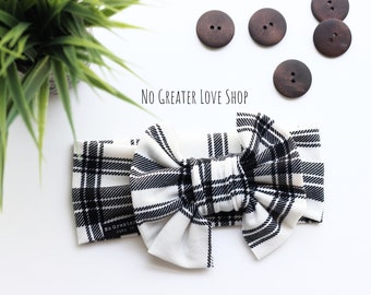 Gorgeous Black & White Plaid Headband - Turban Headband - Top Knot - Baby headband - Big Bow - Buy One Give One