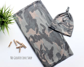 Camo Swaddle Blanket and Knotted Beanie Set - Newborn Swaddle - Newborn Set - Camo Beanie - All Profits to Missions