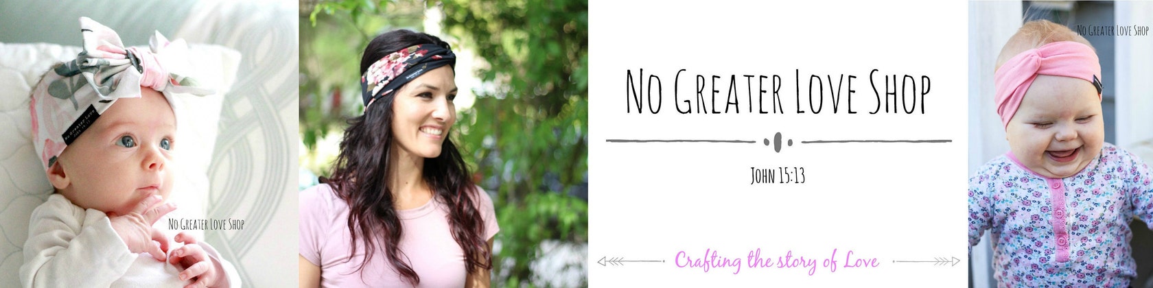 Through our No Greater Love campaign we will be bringing Hope to countless children! For every headband purchased we will be giving one to a child battling cancer in underprivileged countries. There are lots of great headbands to choose from! If you are looking for a custom size or style, message me to see if I can make that happen for you.