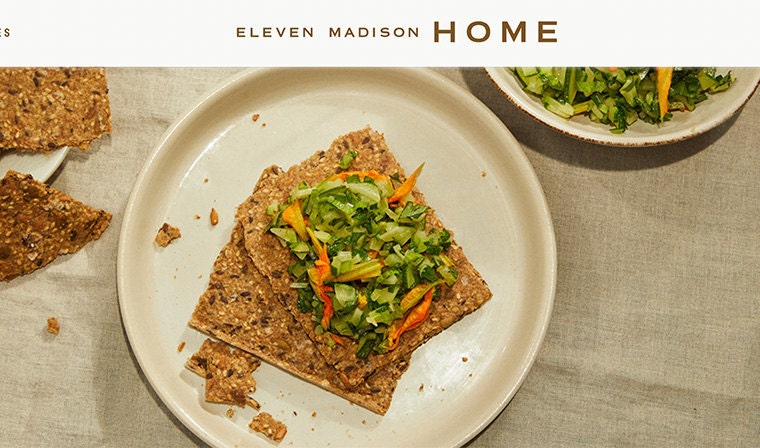Eleven Madison Home Weekly Box: Knekkebrød with squash blossoms and Monty’s Scallion Cashew Cream. YUM!