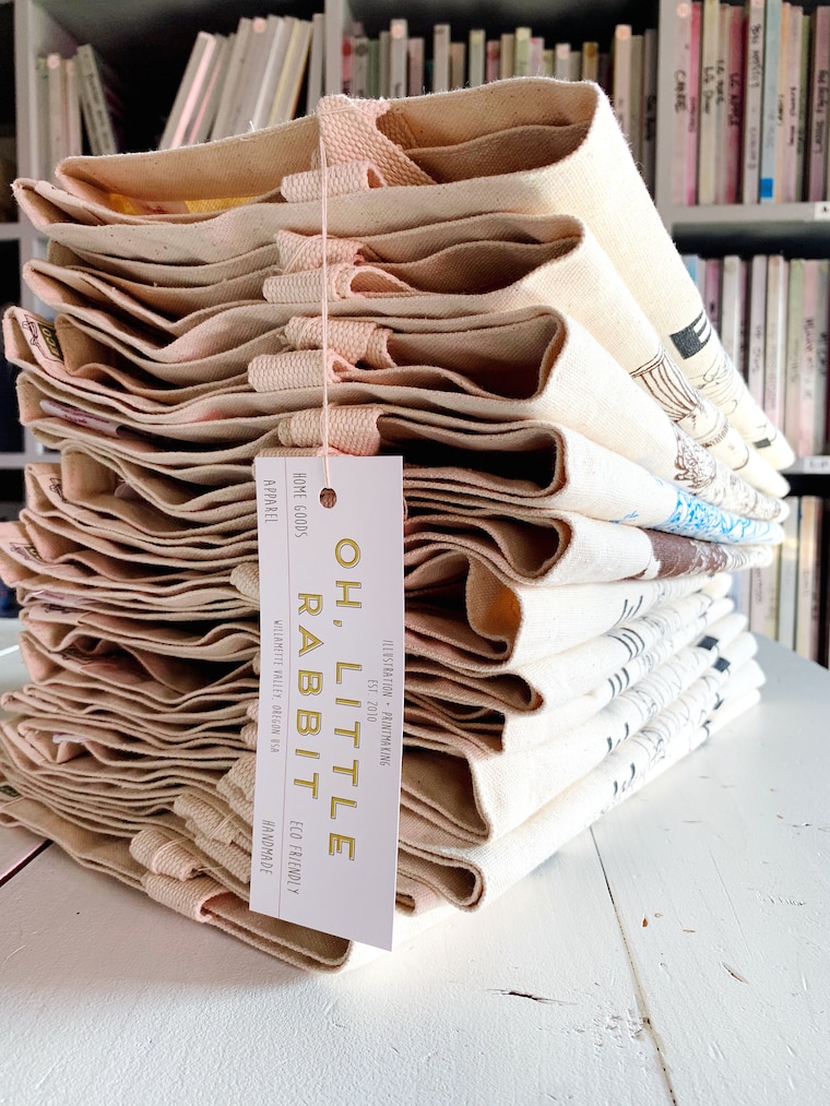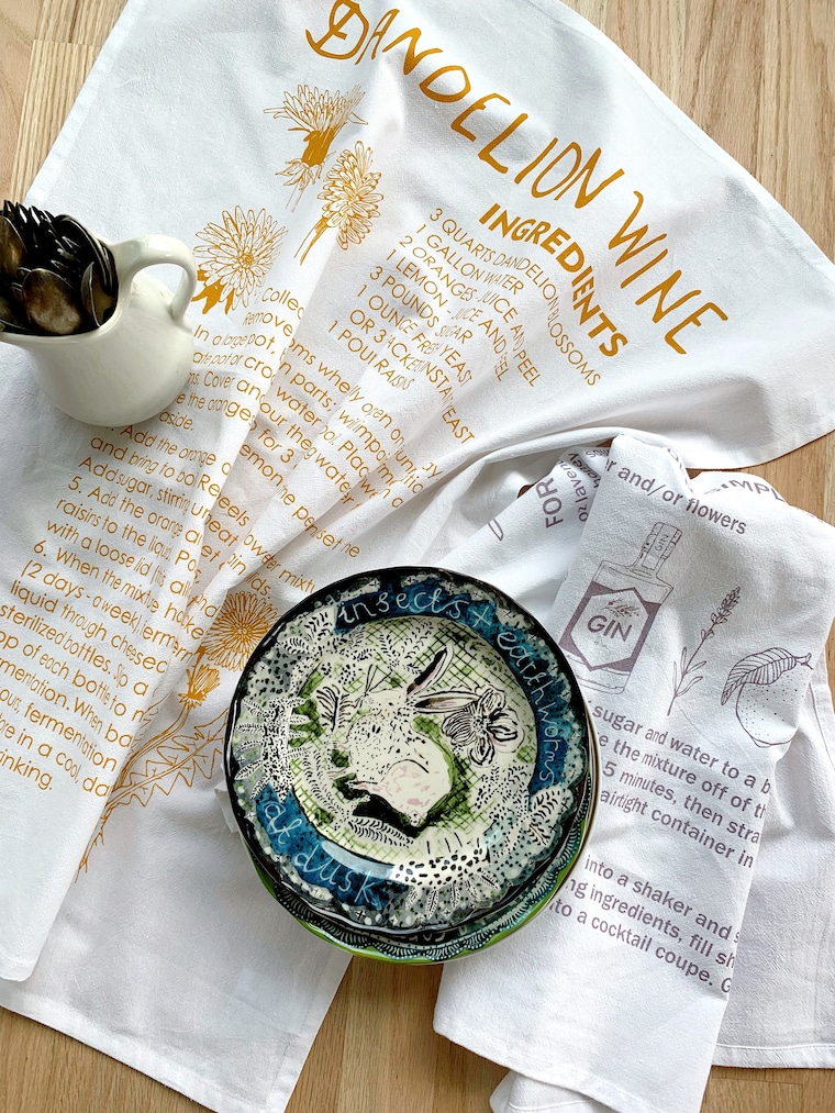 "My product line is a reflection of the things I enjoy and have in my own home. I love the idea of practical art. A piece that can be displayed and visually enjoyed, as well as earn its keep on the oven bar by being the best dish drying flour sack towel around.