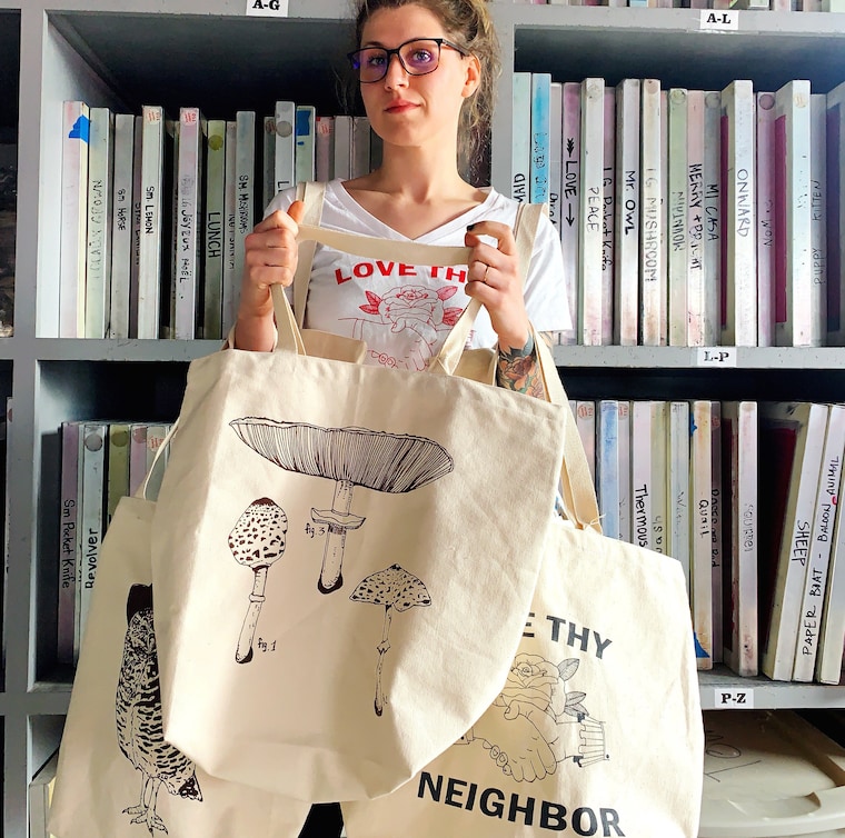 Ilustro cada imagen, quemo cada pantalla, imprimo cada pieza a mano y empaqueto cada pedido. ¡Verdaderamente un espectáculo de una sola mujer! ¡Todo se hace con mucho amor y gratitud!"