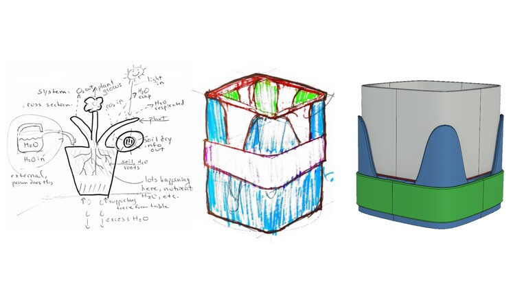 Even things designed with computers start with a paper sketch.