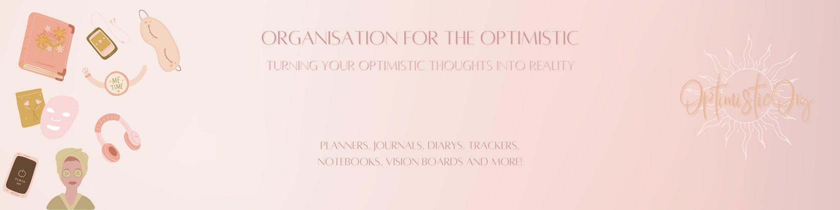 Through a series of planners, trackers, vision boards, journals and much more, I have curated the perfect stepping stones for all my fellow optimists to take control and organise their lives to help anyone achieve anything they imagine.