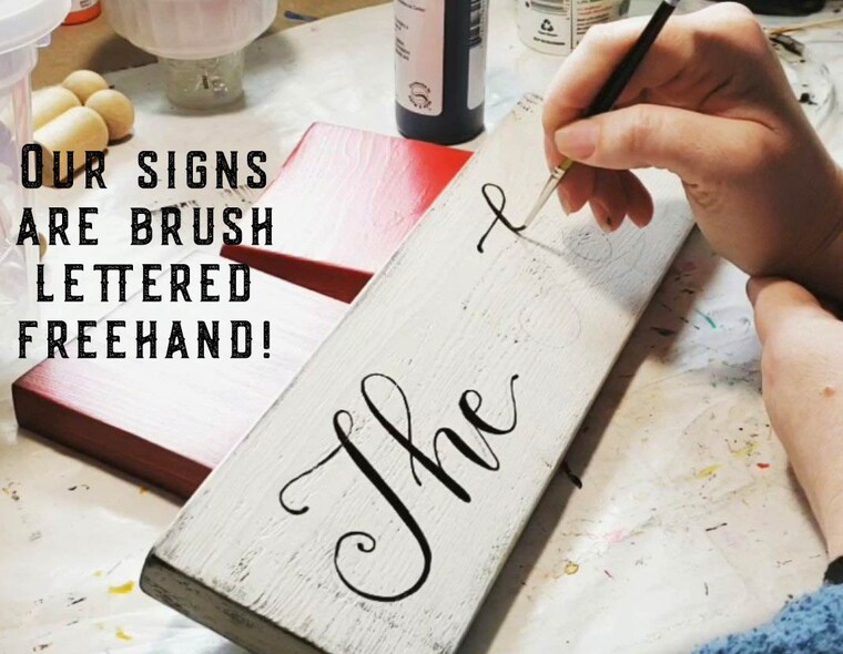 Creating something original and beautiful from discards is a passion shared by our family. Our Backyard Studio was born quite literally out of our back yard, with a summer spent with my husband and children scavenging, cutting, and painting all manner of things we found on our property. From there, it has grown into a full-fledged art business. All my work is painted the very old-fashioned way, completely free-hand without the use of stencils, patterns, or computers. Currently, we have a wide variety of typography signs on reclaimed wood, illustrative artwork on wooden plates, custom personalized wood slice ornaments, and one-of-a-kind clay sculptures. We also love custom work!