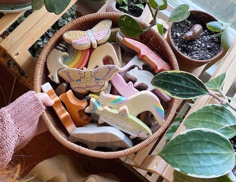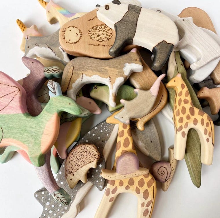 After my kid was born I discovered wooden Waldorf-style animal toys and fell in love. I have always made things- from sewing to embroidery to fiber arts and so many other mediums, so I knew I had to give woodworking a try and make some animals myself. I had never done woodworking before, but I went out and bought a scroll saw, did lots of research, and jumped right in. I found my style with keeping the shapes of the animals true to nature, while still having a simplicity that I love. The little details are so important to me - slight changes to the curve of an animal’s face can completely change the personality of the figurine (and yes, they all have personalities!)
