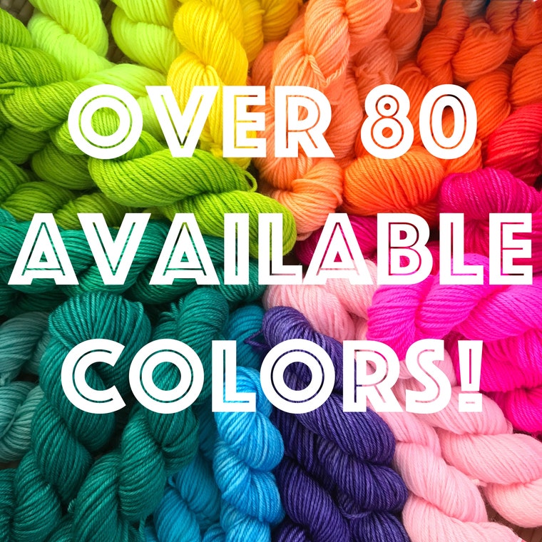 mini skeins in 80+ colors and 5 bases -