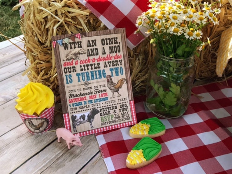 Old MacDonald on the Farm Birthday Invitation and matching party kit.
