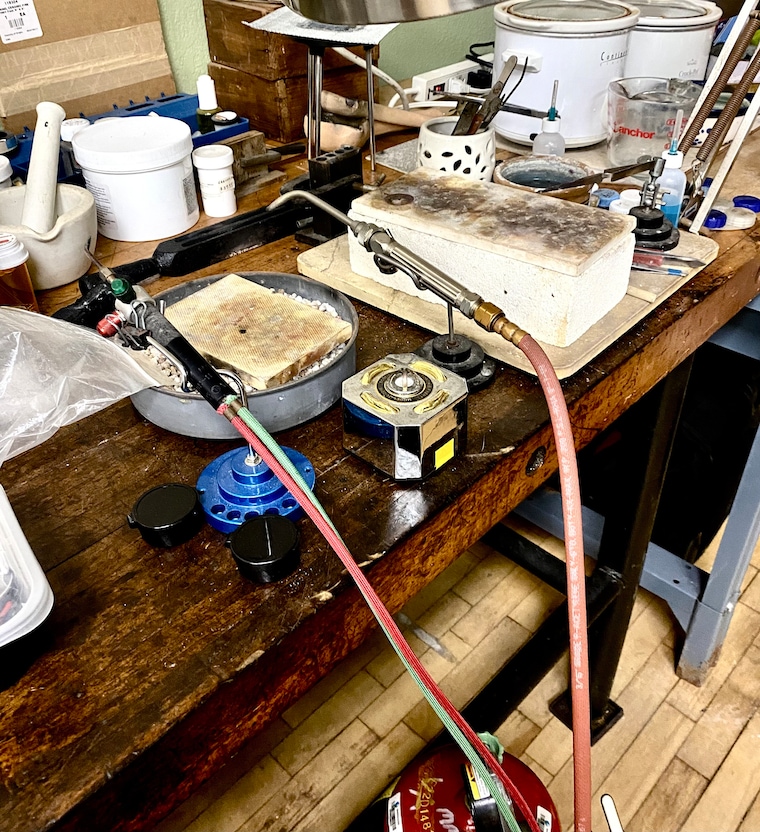 I have a PhD in Marine Science and worked as a professor of Biology and Ecology at a college in Florida. This is probably why the sources and background of the materials that go into my pieces are important to me. I continually strive to use more and more ethical and ecologically sound practices in my studio. I use recycled materials to package shipments whenever possible. I use more eco-friendly chemicals where I can. Mainly I use truly recycled materials – I remove stones and melt down old jewelry and silverware myself. I do not sacrifice anything beautiful or valuable, of course, those go into my personal collection for inspiration!