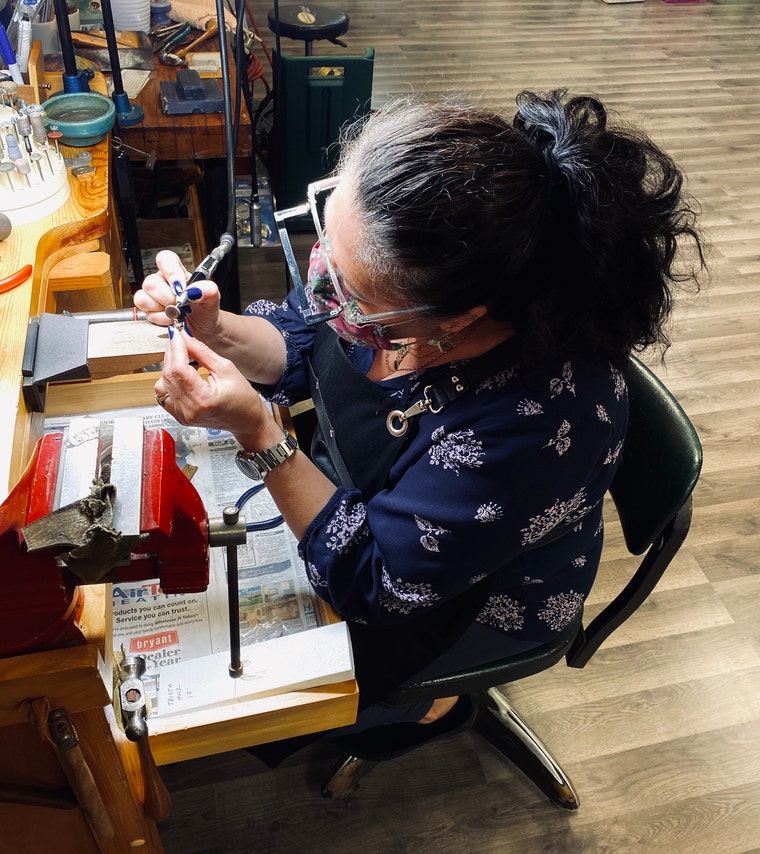 Jewelry has ALWAYS served the same purpose in human societies: to show status (marital, socio-economic, political), to indicate something personal like line of work or interests, etc. To me the most fascinating is our use of adornment as a sort of talisman or amulet; for protection, remembrance, spiritual or personal significance. Jewelry can make the wearer FEEL different. That feeling is elusive and personal and almost doesn’t lend itself to explanation. I think that unspoken truth goes into a piece that is made by someone by hand and it resonates with the person who acquires it. My clients are always extremely emotionally attached to my work. It’s magical and strange and often still surprises me. I don’t talk about it too much but just accept that it is something that happens.