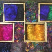 Being sort of a fiber maniac, I love creating luscious blends for yummy yarns and felted projects. I supplement that with gorgeous vintage buttons. Best of all, is sharing this love and products with other people.