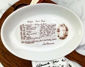 At Prairie Hills Pottery, we create custom ceramics that we personalize through restoring handwritten recipes, invitations, and letters. We transfer them onto food-safe, oven-safe, and hand-washable dishes to preserve them, making them an incredibly unique gift for any occasion – holidays, birthdays, weddings, housewarmings, and more.
