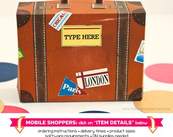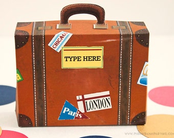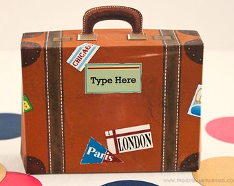 Vintage Suitcase Favor Box - Large with Blue Label : Print at Home Luggage Gift Box | World Travel | Digital File | Instant Download