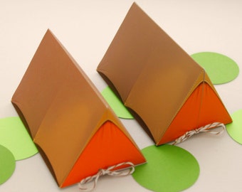 Campout Tent Favor Box - Orange & Khaki : Print at Home Camping Favor Gift Box | Camp | DIY Printable | Digital File - Instant Download