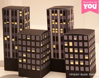 Nighttime City Buildings Favor Box Set: Print at Home Full-Color Digital Templates | DIY Printable | Digital File | Instant Download