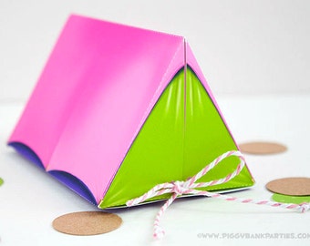Campout Tent Favor Box - Pink, Purple & Lime : Print at Home Camping Favor Gift Box | Camp | DIY Printable | Digital File - Instant Download