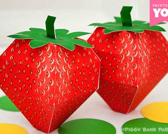 Strawberry Favor Box : Print at Home Full-Color Template | Fruit Gift Box | Tutti-Frutti | DIY Printable | Digital File - Instant Download