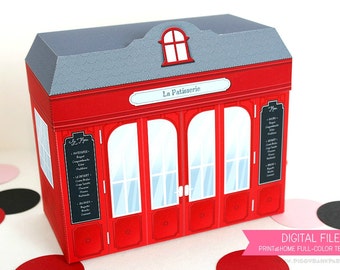 French Bakery Favor Box : Print at Home Full-Color Template | Cupcake Box | Baking Party | French Cafe | DIY Printable - Instant Download