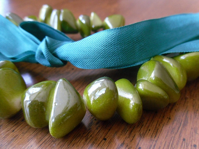 Moss Green Stone Ribbon Necklace-Marble-Spring and Summers Must-Mothers Day -