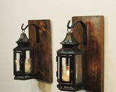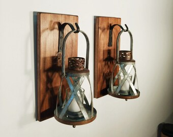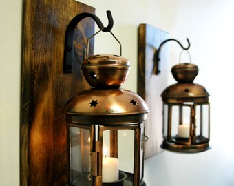Rustic wall decor, Rustic wall sconce, Lantern sconces, black lanterns wall sconce, Rustic home decor, Rustic lanterns,