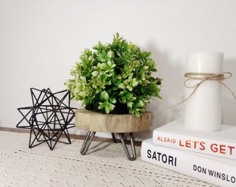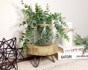 Wood slice with legs, Wood plant stand, Jar with greenery, Wood slice decor, Modern Farmhouse table decor, Glass vase, Flower pot stand,