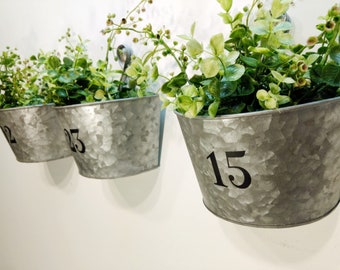 Galvanized wall pots, personalized gift, Wedding gift, Farmhouse wall decor, Rustic metal decor, Anniversary gift, Pots for plants, greenery
