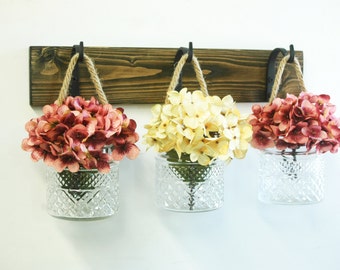 Hanging Mason Jar Wall Decor, Mason Jar Decor, country decor, farmhouse decorating, rustic wall, kitchen decor, rustic
