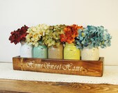 Home Sweet Home, Farmhouse decor, Kitchen Decor, Mason Jar box, Painted jars, Hydrangea flower, Wood box, Kitchen centerpiece, stained box