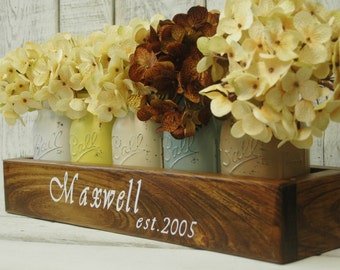 Personalized Mason jar centerpiece, Mason jar decor, Personalized gift, Farmhouse kitchen decor, rustic home decor, mason jar decor, mason