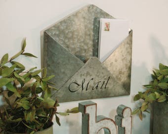 Galvanized metal envelope, Office Decor, Farmhouse office, Farmhouse mail station, Mail pocket, Wall pocket, Secretaries day gift,