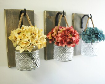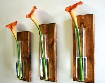 Rustic home decor, Unique wall decor, Wood wall sconce, Wall sconce set, wall mount vase, wall vase set, Farmhouse decor, rustic decor