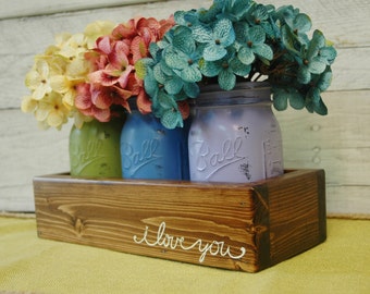 I LOVE YOU mason jar caddy , Farmhouse decor, Farmhouse kitchen decor,Fixer Upper style, wedding gift,summer decor, anniversary, Farmhouse