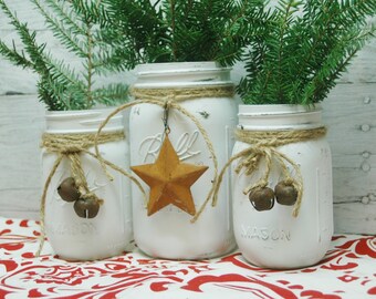 Holiday Star Christmas Jar set, Farmhouse decor, Christmas table decor, Christmas decortions, Reindeer, Christmas tags