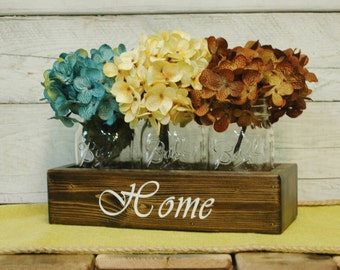 HOME Mason jar caddy , HOME decor, mason jar centerpiece, rustic centerpiece, Bedroom decor, Housewarming gift, wedding gift, stenciled box