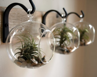 Rustic wall decor, Succulent holder, Farmhouse style decor, Modern Farmhouse, Bedroom decor, glass globe, Air plant vase,Living room decor