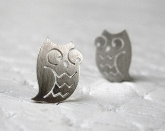 Owl Earrings - Owl Jewelry in sterling silver - Handmade Cute Earrings