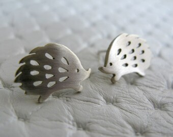 Sterling Silver Hedgehog Earrings - Handmade Studs - Etsy jewelry