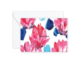THANK YOU Floral Blue + Pink Notecards + Envelopes Pack | Boxed Set (8)