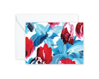 HELLO Floral Blue + Red Notecards + Envelopes Pack | Boxed Set (8)