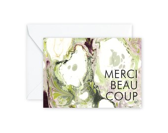MERCI BEAUCOUP Green/Burgundy Notecards + Envelopes Pack | Boxed Set (8)