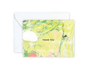 THANK YOU Chartreuse Coral Marble Notecards + Envelopes Pack | Boxed Set (8)
