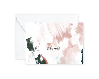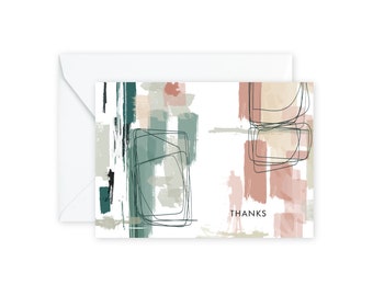 THANKS Sage + Blush Abstract Notecards + Envelopes Pack | Boxed Set (8)