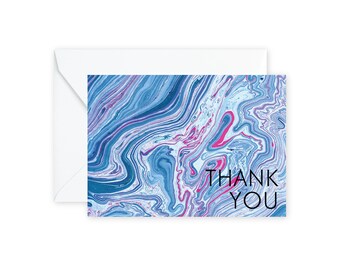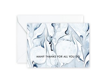 MANY THANKS Aqua Indigo Marble Notecards + Envelopes Pack | Boxed Set (8)