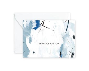 THANKFUL FOR YOU Blue Black Notecards + Envelopes Pack | Boxed Set (8)