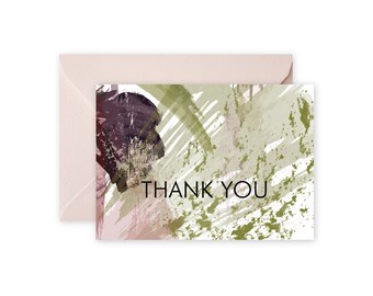 THANK YOU Green Plum Abstract Notecards + Envelopes Pack | Boxed Set (8)