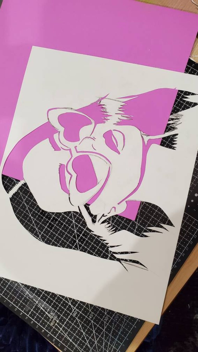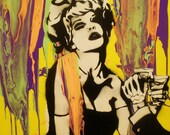 Self-taught artist from St. Louis, MO. My current works are a combination of free-hand abstract backgrounds with high contrast stenciled subjects. I use spray paint to create an effect that resembles vintage movie clips and poster art.
